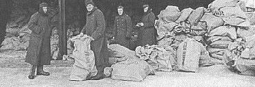 (Foto von der Feldpostleitstelle 547 der 6. Armee in Awdejewski Jan 1943 - Stau der Feldpost für die im Kessel eingeschlossene 6. Armee. Quelle: Archiv für Deutsche Postgeschichte. Heft 1 - 1971: "Die deutsche Feldpost im Zweiten Weltkrieg" außerdem im Internet auf der Seite feldpost.mzv.net/Fp-Amter/fp-amter.html)